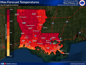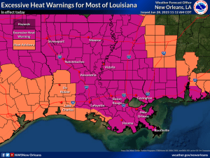 Practice Heat Safety wherever you are. Job Sites: stay hydrated and take breaks in the shade as often as possible. indoors: Check up on the elderly, sick, and those without AC. Vehicles: Never leave kids or pets unattended – LOOK before you LOCK. Outdoors: Limit strenuous outdoor activities, find shade, and stay hydrated. Heat-related deaths are preventable. Protect yourself and others from the impacts of heat waves. Visit https://www.weather.gov/lix/ for more information.